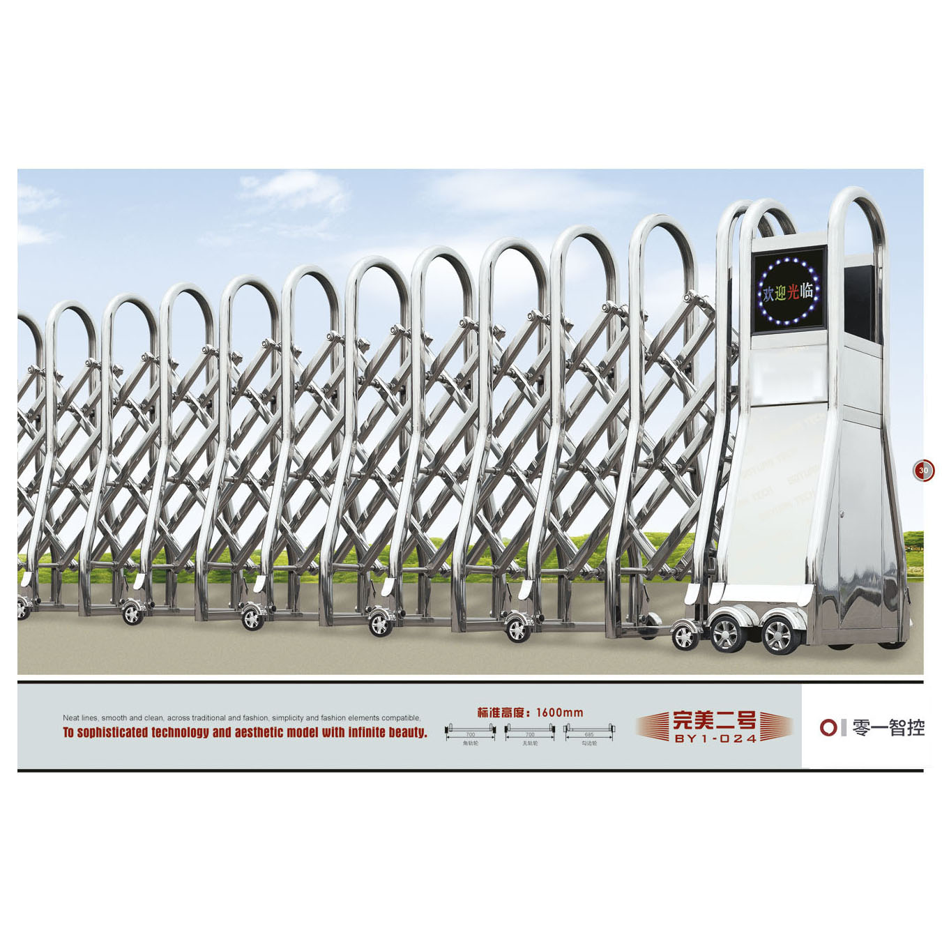葉片門(mén) 高(gāo)檔不(bù)鏽鋼鋁合金(jīn)電(diàn)動伸縮門(mén)