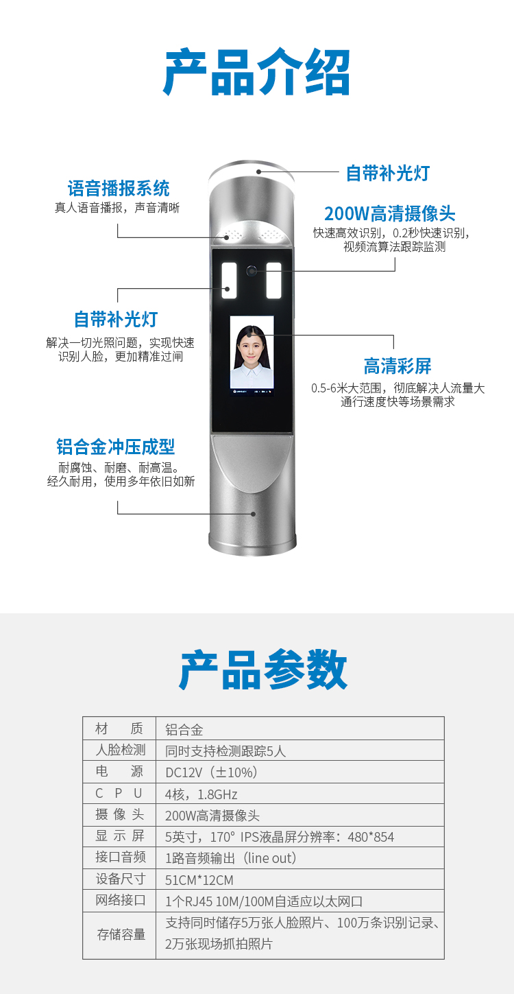 人(rén)臉識别開(kāi)閘,體(tǐ)驗流暢,活體(tǐ)(選配)。32位4核ARM高(gāo)性能(néng)處理(lǐ)器(qì),響應迅速、開(kāi)閘IO信号控制(z↕hì)、陌生(shēng)人(rén)示警功能(néng)、訪客預約刷臉通(tōng)行(xíng)